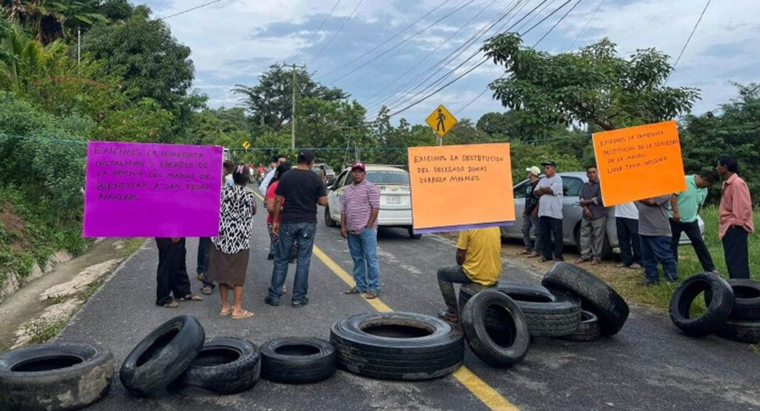 Los manifestantes demandan la destitución del delegado Dimas Zorrosa Morales y de la servidora de la Nación, Liova Tapia Vázquez, acusándolos de generar división en la comunidad y de presuntos actos de corrupción en la ejecución de obras, que según denuncian, se realizan sin el consentimiento del comité local y con empresas externas a la comunidad.