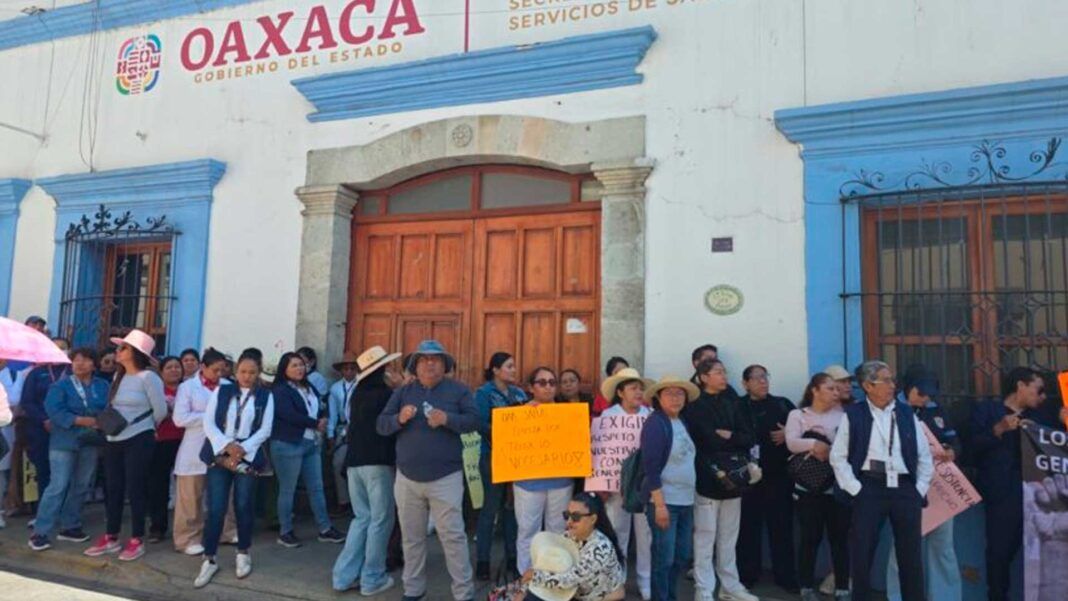 La movilización fue encabezada por personal de la Subsección 07, quienes partieron de la Fuente de las Ocho Regiones y avanzaron hacia las oficinas de los Servicios de Salud de Oaxaca y de la Coordinación Estatal de Promoción Social del IMSS Bienestar.